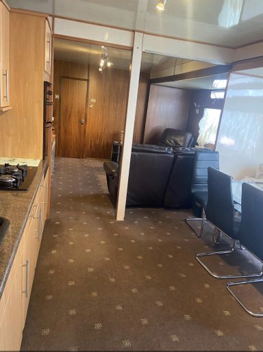 Full kitchen and lving room, two bedrooms as well as a shower washbasen and flushing toilet in a sepearte bathroom
